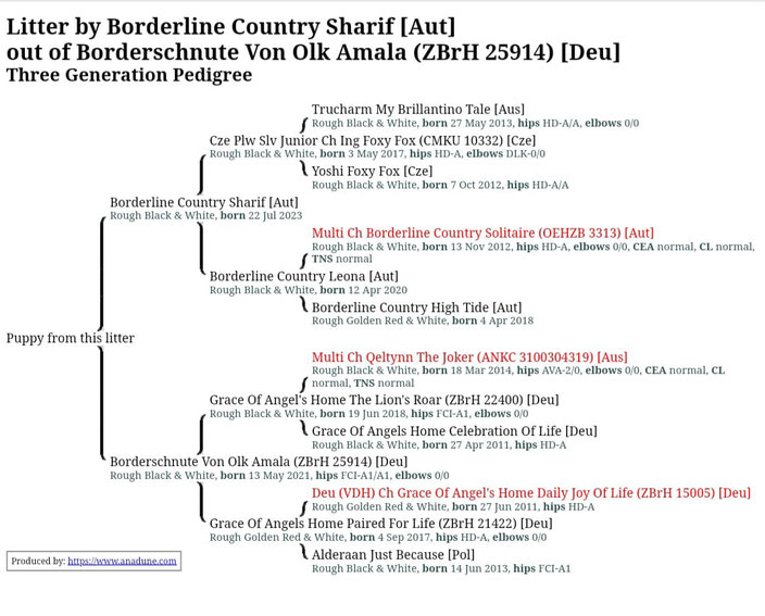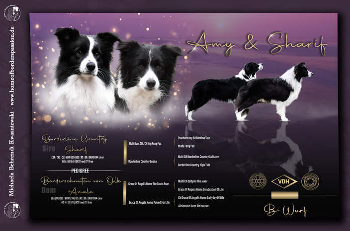 Wir planen einen Wurf mit Amy im Frühjahr/Sommer 2025. Der Vater steht nun fest und ist ein wunderschöner Rüde von Heidi Poschacher (Borderline Country) aus Österreich. Vielen Dank das Sie uns